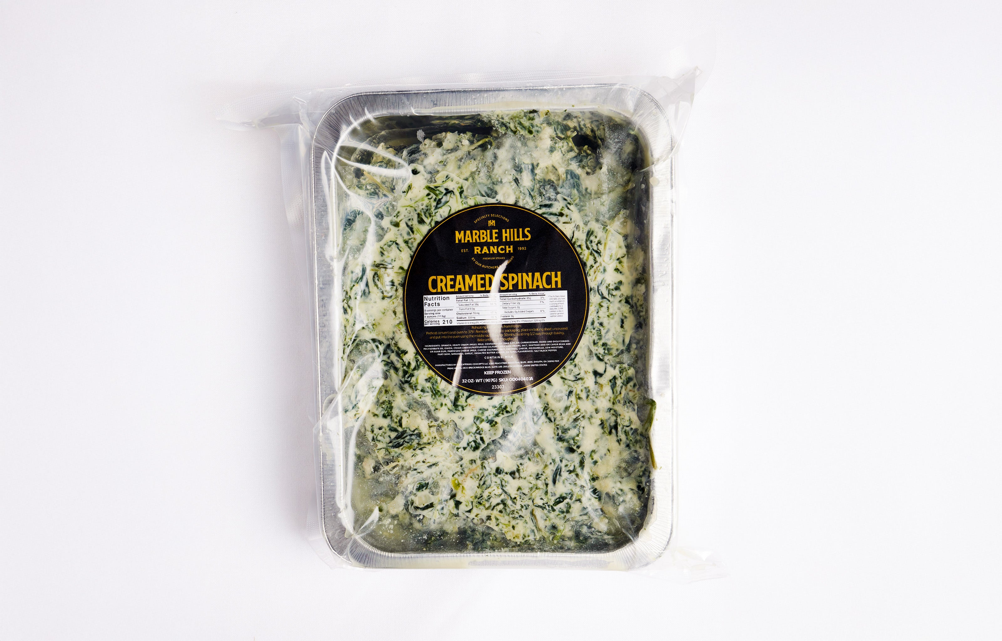 Order your Creamed Spinach now and add a touch of homestyle warmth to your next meal with this comforting classic from Marble Hills Ranch!