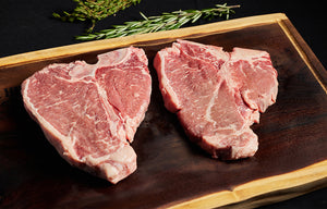 New York Strip or Filet Mignon? No need to choose! Enjoy the best of both worlds with our USDA Choice Porterhouse Steak, a cut that combines the bold, beefy flavor of striploin with the tender, buttery texture of filet de boeuf. The T-shaped Frenched bone is an emblem that brings the essence of the ranch to your plate. Wet-aged for 28 days, this striking steakk develops rich depth and complexity of flavor, making it the perfect choice for steak lovers seeking a top-notch dining experience.Ā