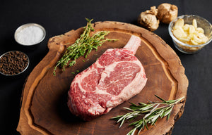 Indulge in the memorable flavor of our Cowboy Ribeye, a thick-cut steak from the upper rib area. This hand-cut selection ensures juicier, more evenly cooked meat, brimming in its own natural juices. Its signature Frenched bone adds an impressive look to your plate, making it a culinary gem perfect for special dinner occasions.Ā