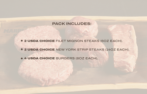 Perfect your grilling game with the Grill 101 Package, featuring a handpicked selection of premium steaks and burgers. Whether you're grilling at home or hosting a barbecue, this variety pack offers something for everyone, making it the ideal choice when you need help deciding what to get.
